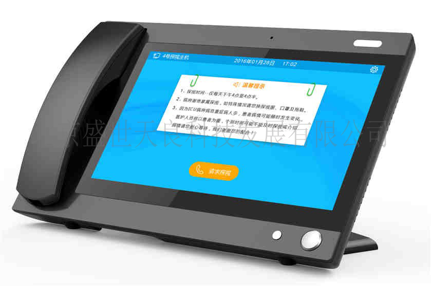 1、采用10.1寸觸摸顯示屏, 720P高清攝像頭。用于ICU探視區(qū)向護(hù)士站發(fā)出探視請求,實現(xiàn)與患者的可視對講。