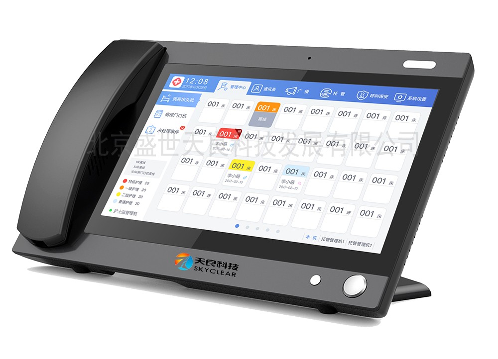 采用10.1寸觸摸顯示屏, 720P高清攝像頭。配送持呼叫器,安裝在重癥病房的設(shè)備帶上,供重癥病房的病人對(duì)講時(shí)使用。